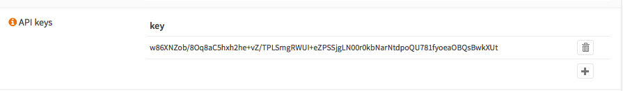 Click on the + sign to add a new key. When the key is created, you will receive a (single download) with the credentials in one text file (ini formatted). The contents of this file look like this: