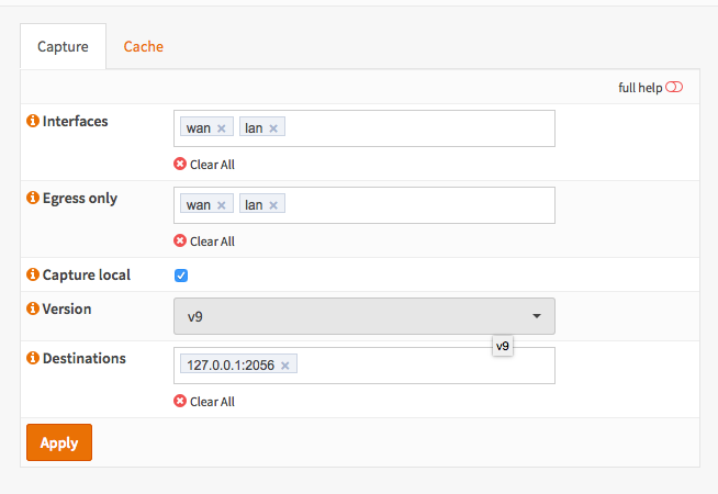 OPNsense Netflow Exporter supports multiple interfaces, filtering of ingress flows and multiple destinations including local capture for analysis by Insight (OPNsense Netflow Analyzer).